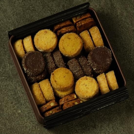 数種類のナッツとカカオをたっぷり楽しめる贅沢なクッキー缶です。