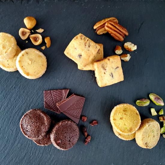 ●原材料…[ディアマンショコラ]小麦粉(国内製造)、バター、砂糖、カカオマス、ココアパウダー、卵黄、カカオニブ、カカオバター、食塩(一部に小麦、乳成分、卵を含む) [ディアマンピスタチオ]小麦粉(国内製造)、バター、砂糖、ピスタチオ、卵黄、食塩(一部に小麦、乳成分、卵を含む) [ディアマンヘーゼル]小麦粉(国内製造)、バター、砂糖、ヘーゼルナッツ、卵黄、食塩(一部に小麦、乳成分、卵を含む) [キャラメルピーカン]小麦粉(国内製造)、バター、メープルシュガー、ピーカンナッツ、アーモンドパウダー、卵、砂糖、カカオニブ、食塩(一部に小麦、乳成分、アーモンド、卵を含む)